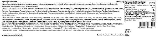 Spring Collection er Summerbirds ultimative påskeæske og kan med rette betegnes som det ultimative påskeæg. Indholdet består af nøje udvalgte økologiske chokolader, fremstillet med stor respekt for råvarer, håndværk og smag. Æsken er ideel til selvforkælelse, men egner sig i særdeleshed også som eksklusiv værtsgave, firmagave eller påskegave til én, du virkelig vil imponere.